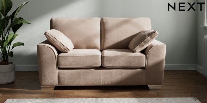 7.3.1 Buy Stamford 2 Seater Small Sofa Relaxed Linen Look Mid Natural Large Square Angle - Chrome Metal from the Next UK online shop Click here to use our accessible website