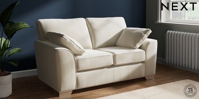 7.3.1 Buy Stamford 2 Seater Small Sofa Relaxed Linen Look Oyster Large Square Angle - Chrome Metal from the Next UK online shop Click here to use our accessible website