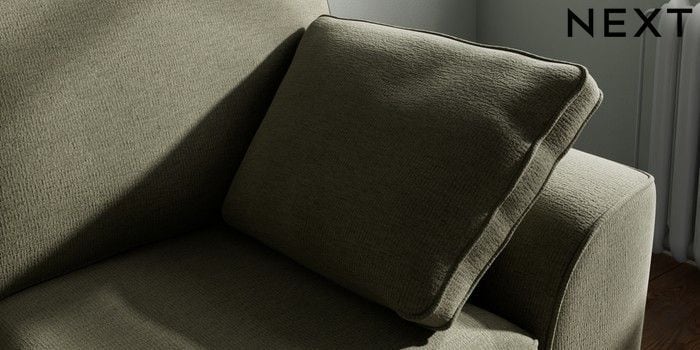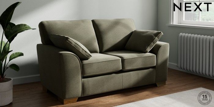 7.2.10 Buy Stamford 2 Seater Small Sofa Ripple Chenille Mid Moss Green Large Square Angle - Brushed Brass from the Next UK online shop Click here to use our accessible website
