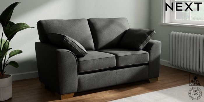 7.3.1 Buy Stamford 2 Seater Small Sofa Tweedy Blend Easy Clean Charcoal Grey Large Square Angle - Brushed Brass from the Next UK online shop Click here to use our accessible website