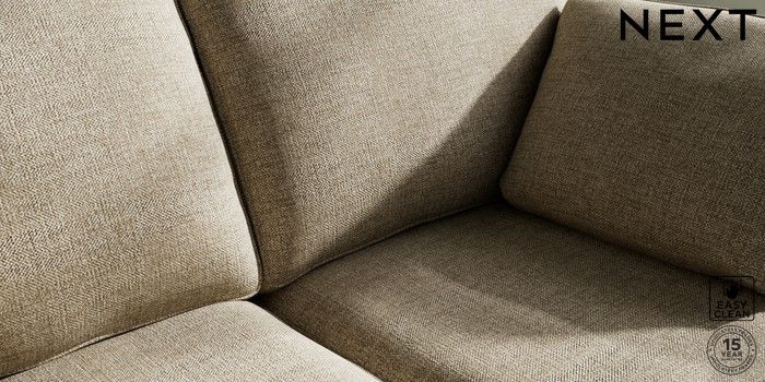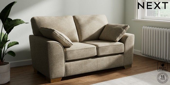 7.3.1 Buy Stamford 2 Seater Small Sofa Woven Chenille Easy Clean Mid Natural Large Square Angle - Brushed Brass from the Next UK online shop Click here to use our accessible website