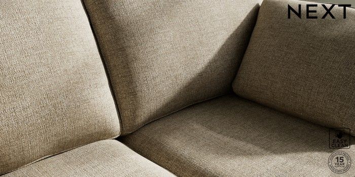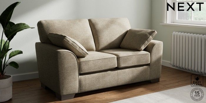 7.3.1 Buy Stamford 2 Seater Small Sofa Woven Chenille Easy Clean Mid Natural Large Square Angle - Gunmetal from the Next UK online shop Click here to use our accessible website