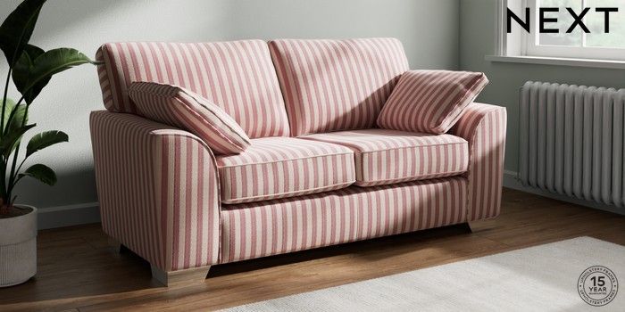 7.3.1 Buy Stamford 2 Seater Sofa Bold Chenille Stripe Dark Pink Large Square Angle - Chrome Metal from the Next UK online shop Click here to use our accessible website