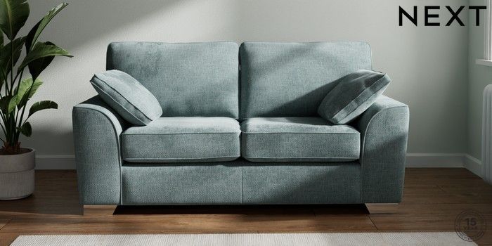 7.2.6 Buy Stamford 2 Seater Sofa Chunky Chenille Light Teal Green Large Square Angle - Chrome Metal from the Next UK online shop Click here to use our accessible website