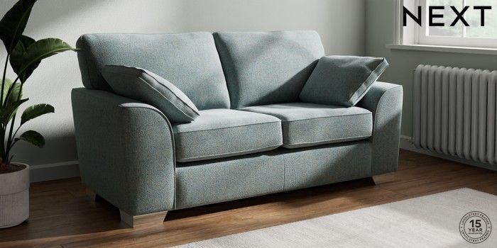 7.2.10 Buy Stamford 2 Seater Sofa Chunky Marl Mid Blue Large Square Angle - Chrome Metal from the Next UK online shop Click here to use our accessible website