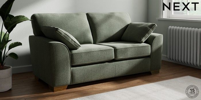 7.2.10 Buy Stamford 2 Seater Sofa Chunky Texture Mid Forest Green Large Square Angle - Brushed Brass from the Next UK online shop Click here to use our accessible website