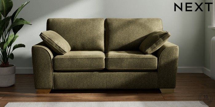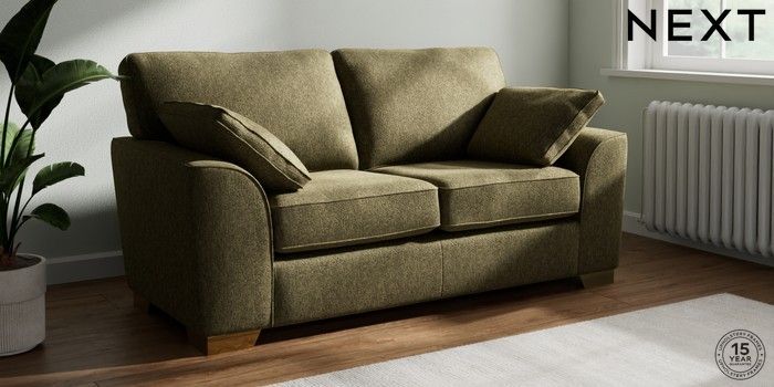 7.2.10 Buy Stamford 2 Seater Sofa Cotswold Chenille Dark Green Large Square Angle - Brushed Brass from the Next UK online shop Click here to use our accessible website