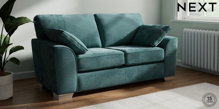 7.3.1 Buy Stamford 2 Seater Sofa Chunky Chenille Mid Teal Green Large Square Angle - Chrome Metal from the Next UK online shop Click here to use our accessible website