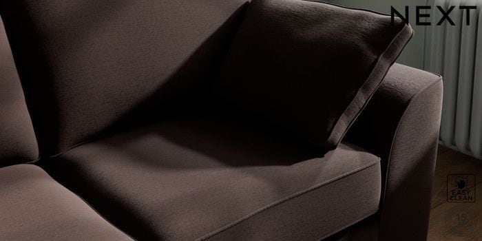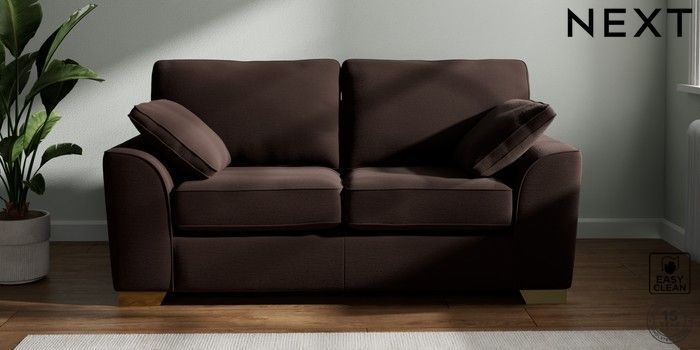 7.2.10 Buy Stamford 2 Seater Sofa Fine Chenille Easy Clean Chocolate Brown Large Square Angle - Brushed Brass from the Next UK online shop Click here to use our accessible website