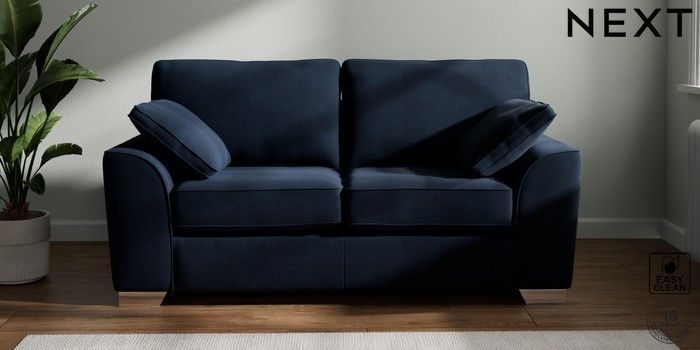 7.2.6 Buy Stamford 2 Seater Sofa Fine Chenille Easy Clean Dark Navy Blue Large Square Angle - Chrome Metal from the Next UK online shop Click here to use our accessible website