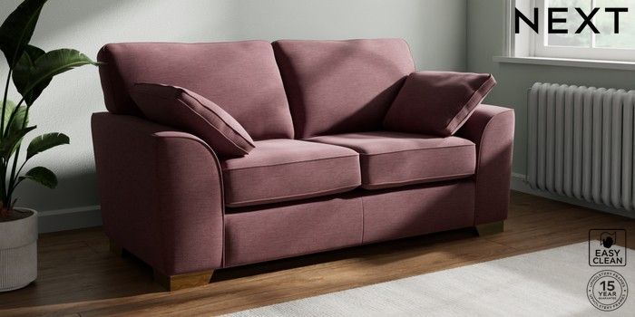 7.3.1 Buy Stamford 2 Seater Sofa Fine Chenille Easy Clean Mid Mulberry Purple Large Square Angle - Brushed Brass from the Next UK online shop Click here to use our accessible website