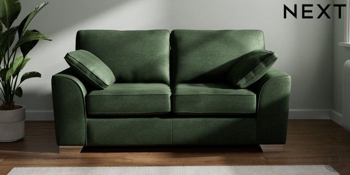 7.2.6 Buy Stamford 2 Seater Sofa Luxe Chenille Dark Green Large Square Angle - Chrome Metal from the Next UK online shop Click here to use our accessible website
