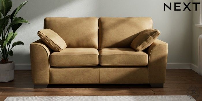 7.2.6 Buy Stamford 2 Seater Sofa Luxe Chenille Honey Yellow Large Square Angle - Gunmetal from the Next UK online shop Click here to use our accessible website