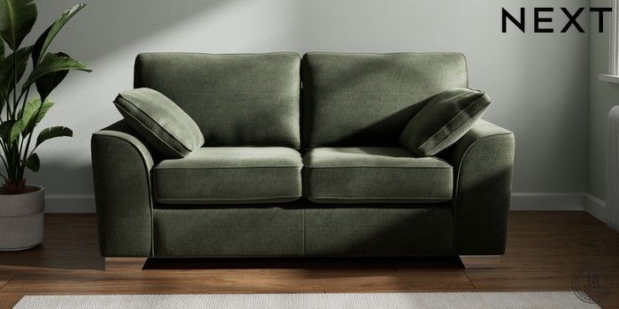 7.2.6 Buy Stamford 2 Seater Sofa Luxe Chenille Mid Green Large Square Angle - Chrome Metal from the Next UK online shop Click here to use our accessible website