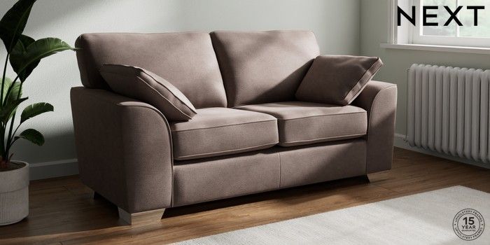 7.2.10 Buy Stamford 2 Seater Sofa Luxe Chenille Mink Brown Large Square Angle - Chrome Metal from the Next UK online shop Click here to use our accessible website