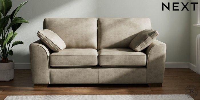 7.3.1 Buy Stamford 2 Seater Sofa Monza Faux Leather Easy Clean Mink Brown Large Square Angle - Mid from the Next UK online shop Click here to use our accessible website