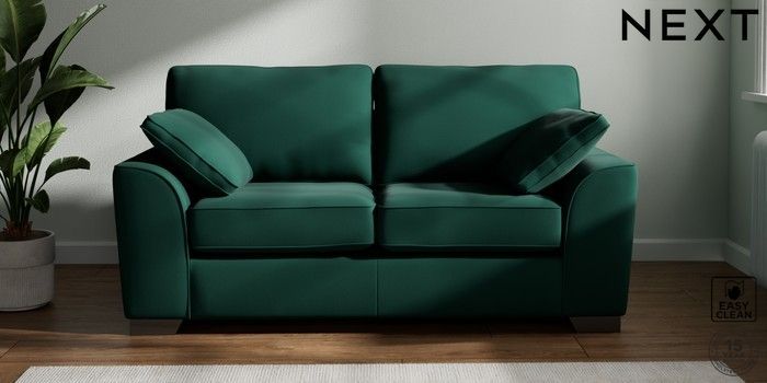7.3.1 Buy Stamford 2 Seater Sofa Plush Velvet Easy Clean Bottle Green Large Square Angle - Gunmetal from the Next UK online shop Click here to use our accessible website