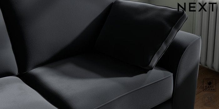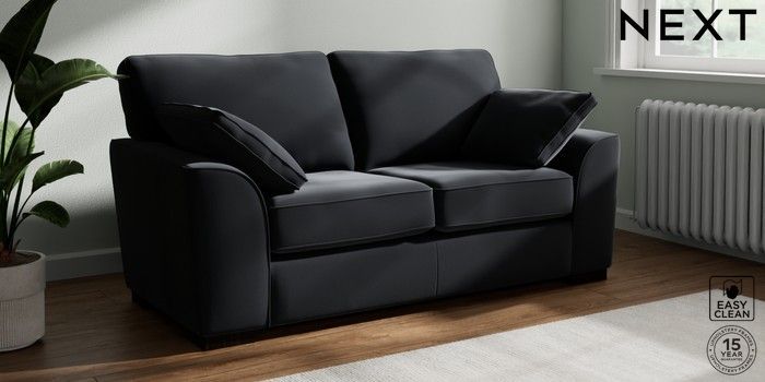 7.2.10 Buy Stamford 2 Seater Sofa Plush Velvet Easy Clean Charcoal Grey Large Square Angle - Dark from the Next UK online shop Click here to use our accessible website