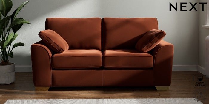 7.2.6 Buy Stamford 2 Seater Sofa Plush Velvet Easy Clean Ginger Orange Large Square Angle - Brushed Brass from the Next UK online shop Click here to use our accessible website