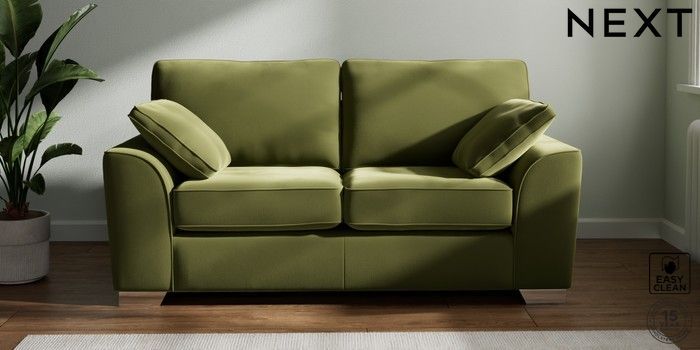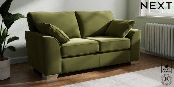 7.3.1 Buy Stamford 2 Seater Sofa Plush Velvet Easy Clean Mid Olive Green Large Square Angle - Chrome Metal from the Next UK online shop Click here to use our accessible website