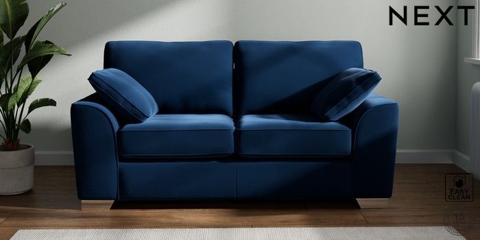 7.2.6 Buy Stamford 2 Seater Sofa Plush Velvet Easy Clean Navy Blue Large Square Angle - Chrome Metal from the Next UK online shop Click here to use our accessible website