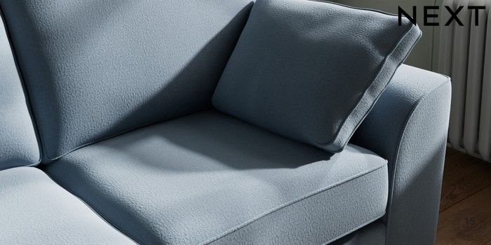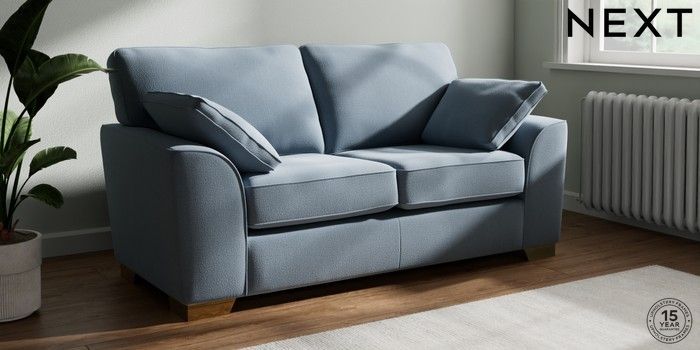 7.2.10 Buy Stamford 2 Seater Sofa Relaxed Linen Look Mid Blue Large Square Angle - Brushed Brass from the Next UK online shop Click here to use our accessible website