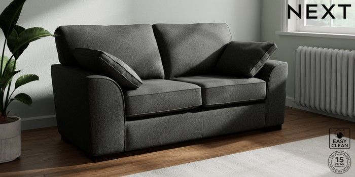 7.3.1 Buy Stamford 2 Seater Sofa Tweedy Blend Easy Clean Charcoal Grey Large Square Angle - Dark from the Next UK online shop Click here to use our accessible website