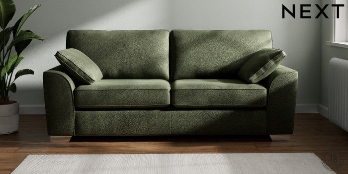 7.2.6 Buy Stamford 3 Seater Sofa Boucle Chenille Dark Moss Green Large Square Angle - Chrome Metal from the Next UK online shop Click here to use our accessible website