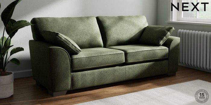 7.3.1 Buy Stamford 3 Seater Sofa Boucle Chenille Dark Moss Green Large Square Angle - Gunmetal from the Next UK online shop Click here to use our accessible website