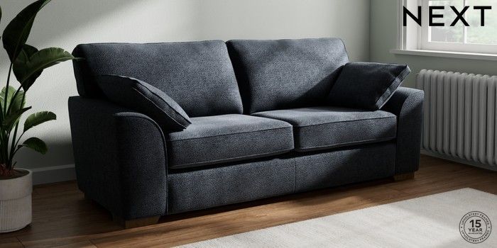7.2.10 Buy Stamford 3 Seater Sofa Boucle Chenille Dark Slate Blue Large Square Angle - Mid from the Next UK online shop Click here to use our accessible website