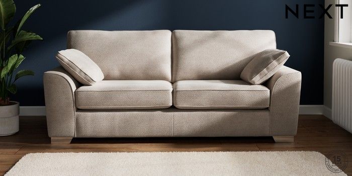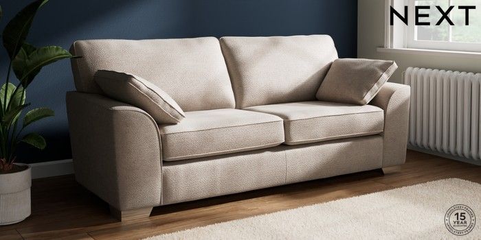 7.3.1 Buy Stamford 3 Seater Sofa Boucle Chenille Light Natural Large Square Angle - Chrome Metal from the Next UK online shop Click here to use our accessible website