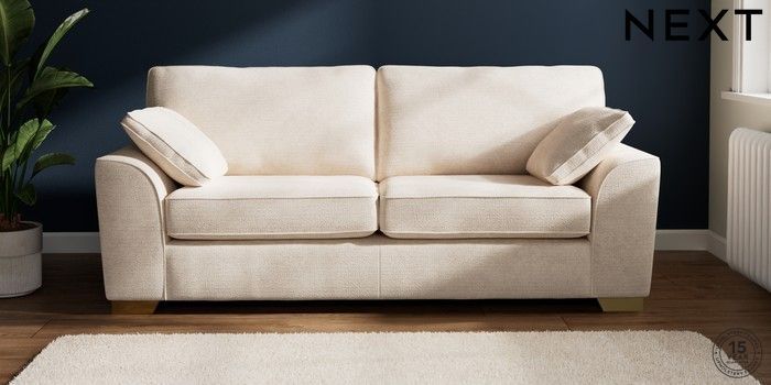 7.2.6 Buy Stamford 3 Seater Sofa Boucle Chenille Oyster Large Square Angle - Brushed Brass from the Next UK online shop Click here to use our accessible website