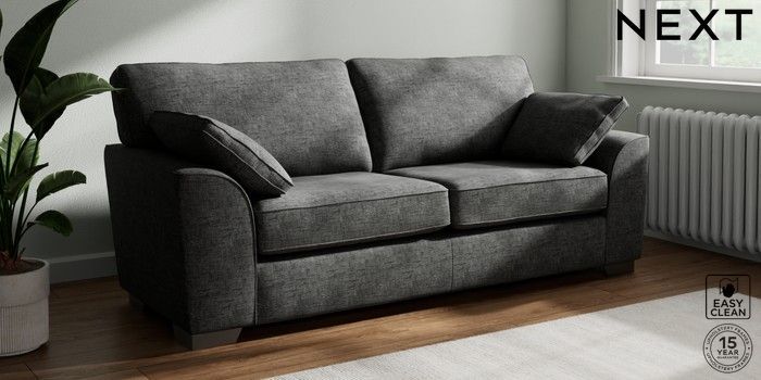 7.3.1 Buy Stamford 3 Seater Sofa Boucle Weave Easy Clean Charcoal Grey Large Square Angle - Gunmetal from the Next UK online shop Click here to use our accessible website