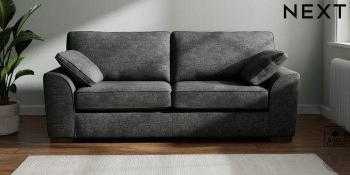 7.2.10 Buy Stamford 3 Seater Sofa Boucle Weave Easy Clean Charcoal Grey Large Square Angle - Mid from the Next UK online shop Click here to use our accessible website