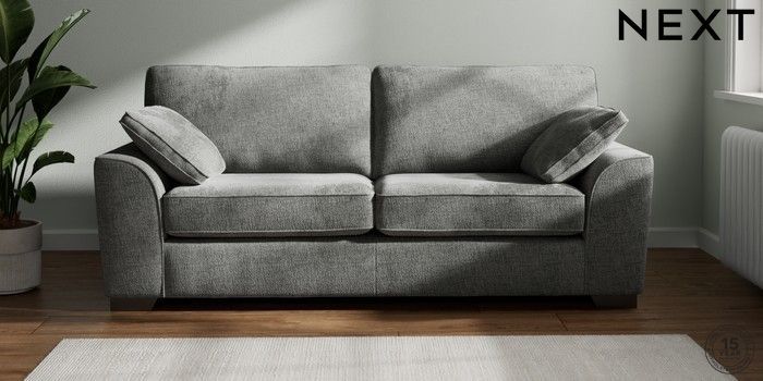7.2.6 Buy Stamford 3 Seater Sofa Chunky Chenille Dark Grey Large Square Angle - Gunmetal from the Next UK online shop Click here to use our accessible website