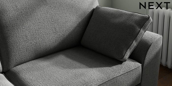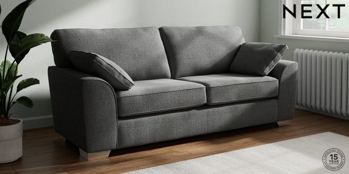 7.2.10 Buy Stamford 3 Seater Sofa Chunky Texture Dark Grey Large Square Angle - Chrome Metal from the Next UK online shop Click here to use our accessible website
