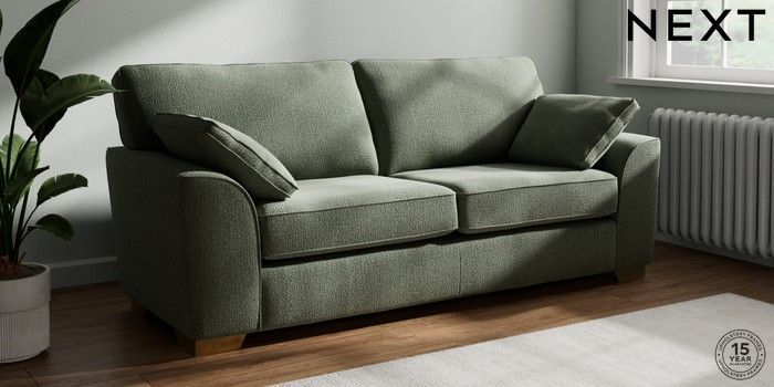 7.2.10 Buy Stamford 3 Seater Sofa Chunky Texture Mid Forest Green Large Square Angle - Brushed Brass from the Next UK online shop Click here to use our accessible website
