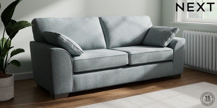 7.3.1 Buy Stamford 3 Seater Sofa Chunky Weave Mid Blue Large Square Angle - Gunmetal from the Next UK online shop Click here to use our accessible website