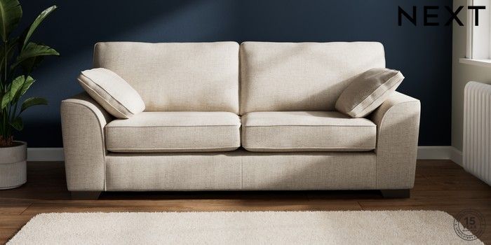 7.2.6 Buy Stamford 3 Seater Sofa Chunky Weave Mid Natural Large Square Angle - Gunmetal from the Next UK online shop Click here to use our accessible website