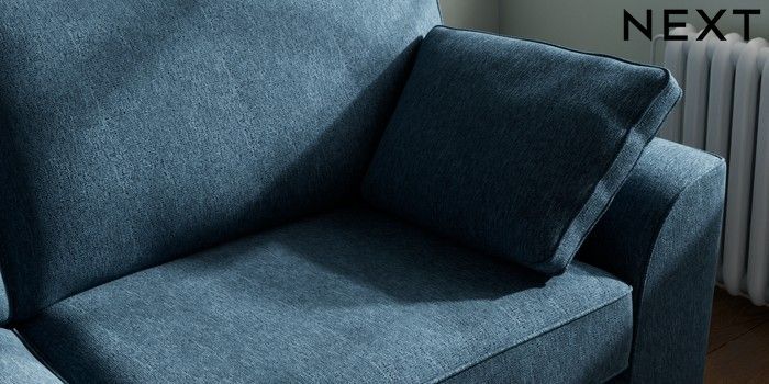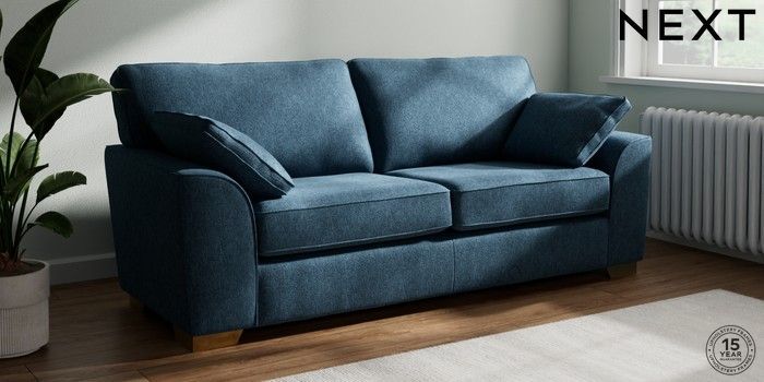 7.2.10 Buy Stamford 3 Seater Sofa Cotswold Chenille Dark Blue Large Square Angle - Brushed Brass from the Next UK online shop Click here to use our accessible website