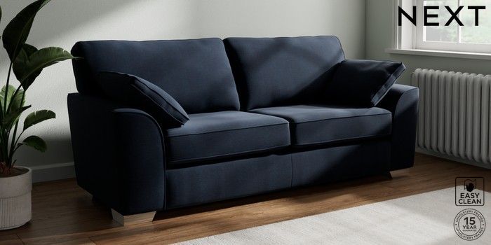 7.2.10 Buy Stamford 3 Seater Sofa Fine Chenille Easy Clean Dark Navy Blue Large Square Angle - Chrome Metal from the Next UK online shop Click here to use our accessible website