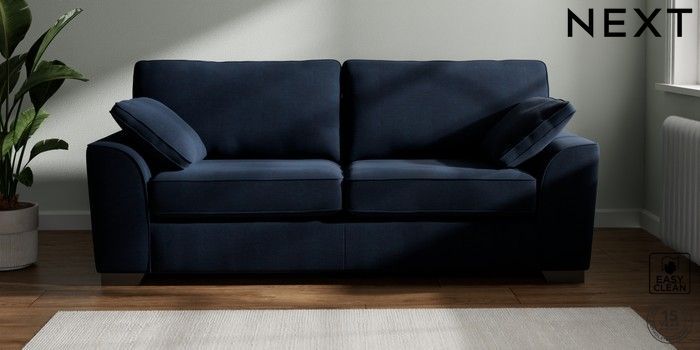 7.3.1 Buy Stamford 3 Seater Sofa Fine Chenille Easy Clean Dark Navy Blue Large Square Angle - Gunmetal from the Next UK online shop Click here to use our accessible website