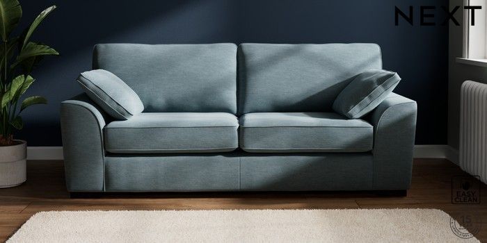 7.2.6 Buy Stamford 3 Seater Sofa Fine Chenille Easy Clean Mid Blue Large Square Angle - Dark from the Next UK online shop Click here to use our accessible website