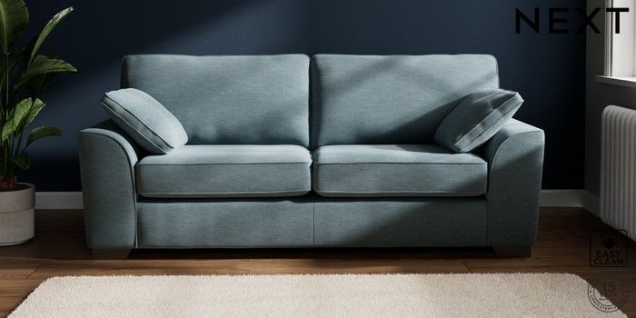 7.3.1 Buy Stamford 3 Seater Sofa Fine Chenille Easy Clean Mid Blue Large Square Angle - Gunmetal from the Next UK online shop Click here to use our accessible website