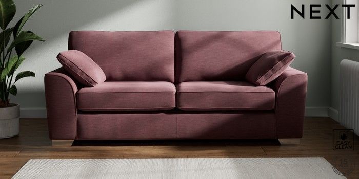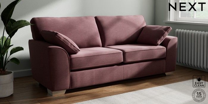 7.3.1 Buy Stamford 3 Seater Sofa Fine Chenille Easy Clean Mid Mulberry Purple Large Square Angle - Chrome Metal from the Next UK online shop Click here to use our accessible website
