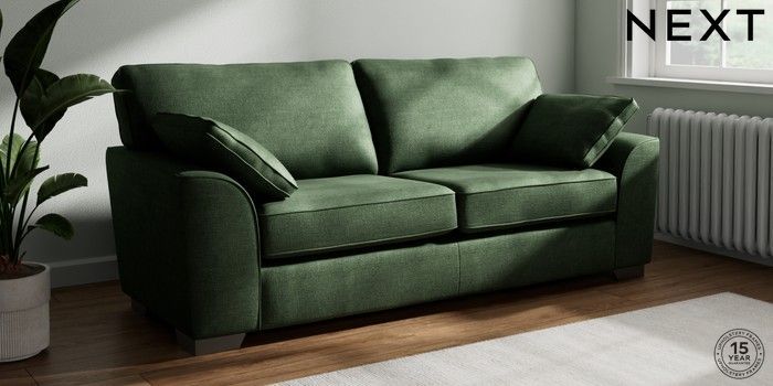 7.2.10 Buy Stamford 3 Seater Sofa Luxe Chenille Dark Green Large Square Angle - Gunmetal from the Next UK online shop Click here to use our accessible website