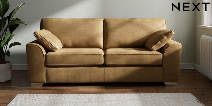 7.2.6 Buy Stamford 3 Seater Sofa Luxe Chenille Honey Yellow Large Square Angle - Chrome Metal from the Next UK online shop Click here to use our accessible website