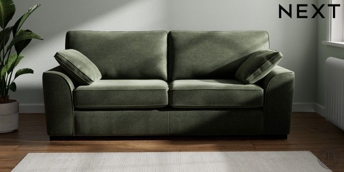 7.2.6 Buy Stamford 3 Seater Sofa Luxe Chenille Mid Green Large Square Angle - Dark from the Next UK online shop Click here to use our accessible website