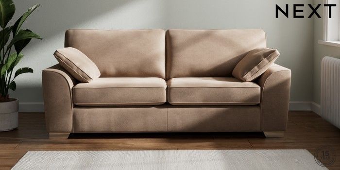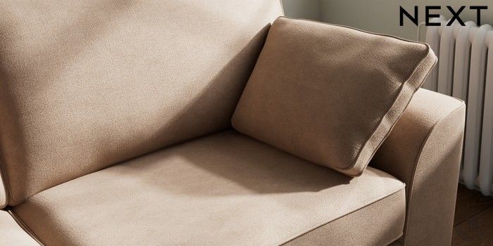 7.3.1 Buy Stamford 3 Seater Sofa Luxe Chenille Mid Natural Large Square Angle - Chrome Metal from the Next UK online shop Click here to use our accessible website