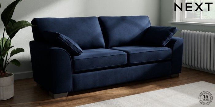 7.2.10 Buy Stamford 3 Seater Sofa Luxe Chenille Navy Blue Large Square Angle - Gunmetal from the Next UK online shop Click here to use our accessible website